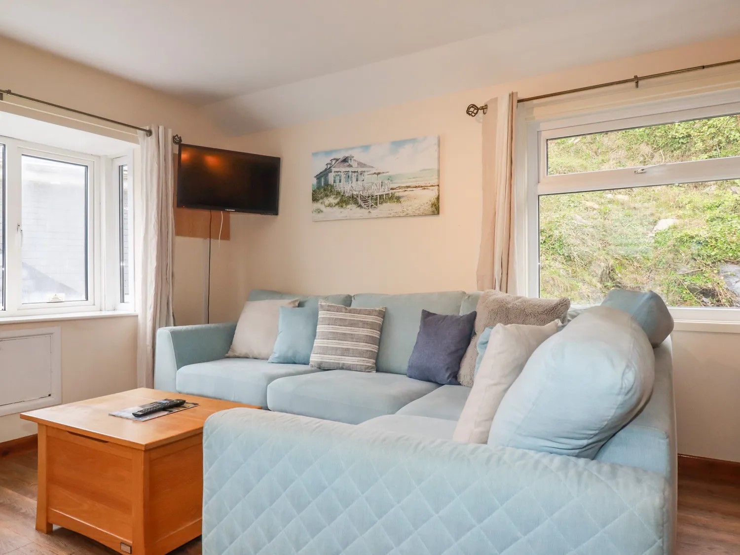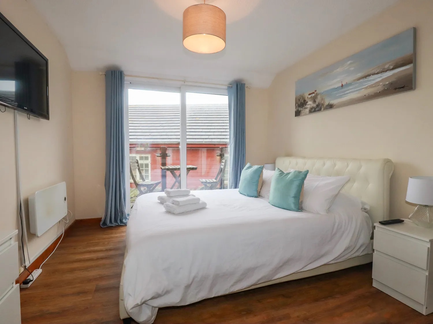 The property opens up to an open-plan living area, featuring a large corner sofa, wall mounted TV/DVD , Kitchen with all the necessary appliances and dining area. Choose from the very spacious king-size room with sea view balcony or the bunk room to lay your head down, or even the sofa has a fitted deluxe sofa bed.